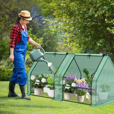 $82.99 – $109.99Durable 140 GSM PE Cover: Crafted with high-quality, waterproof, UV-resistant, and heat-insulating PE material, the greenhouse promotes healthy plant growth and extends growing seasons by maintaining optimal internal conditions Reinforced Tear-Resistant Design: Double-stitched seams and strengthened window joints effectively prevent tearing, offering robust protection against hail, debris, and harsh weather…